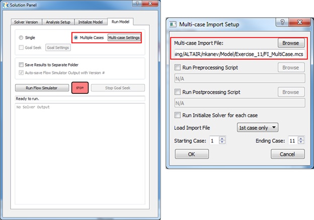 - In the solution Panel, select Multiple Cases and click Multi-case Settings