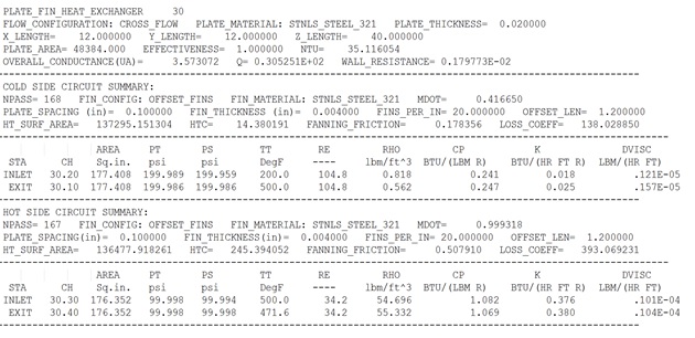 - Inlet and outlet information for cold and hot side of heat exchanger with