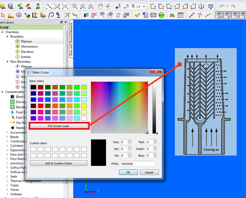 2. Exit the user settings and right click on the background and select change background color. In the window that pops up, select Pick Screen Color and click on the background of the blade image. Click OK. This should turn the background of flow simulator the same as that of the image.