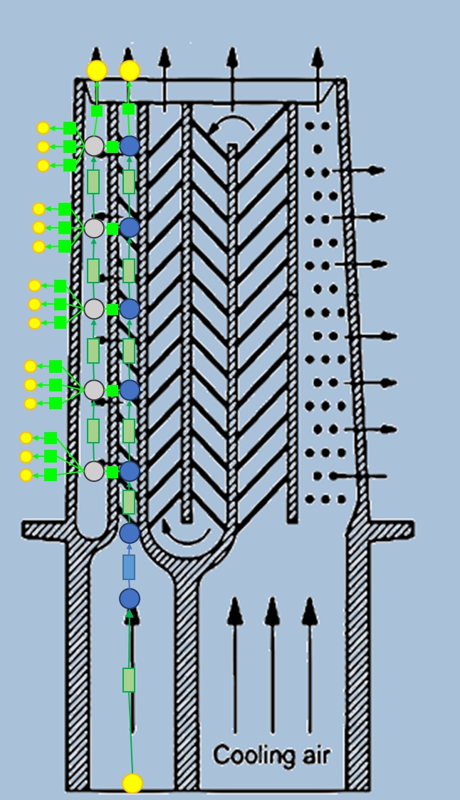 • This is to account for the flow making a turn to pass through the crossover holes and film holes because of the axial orientation in the elements representing those features
