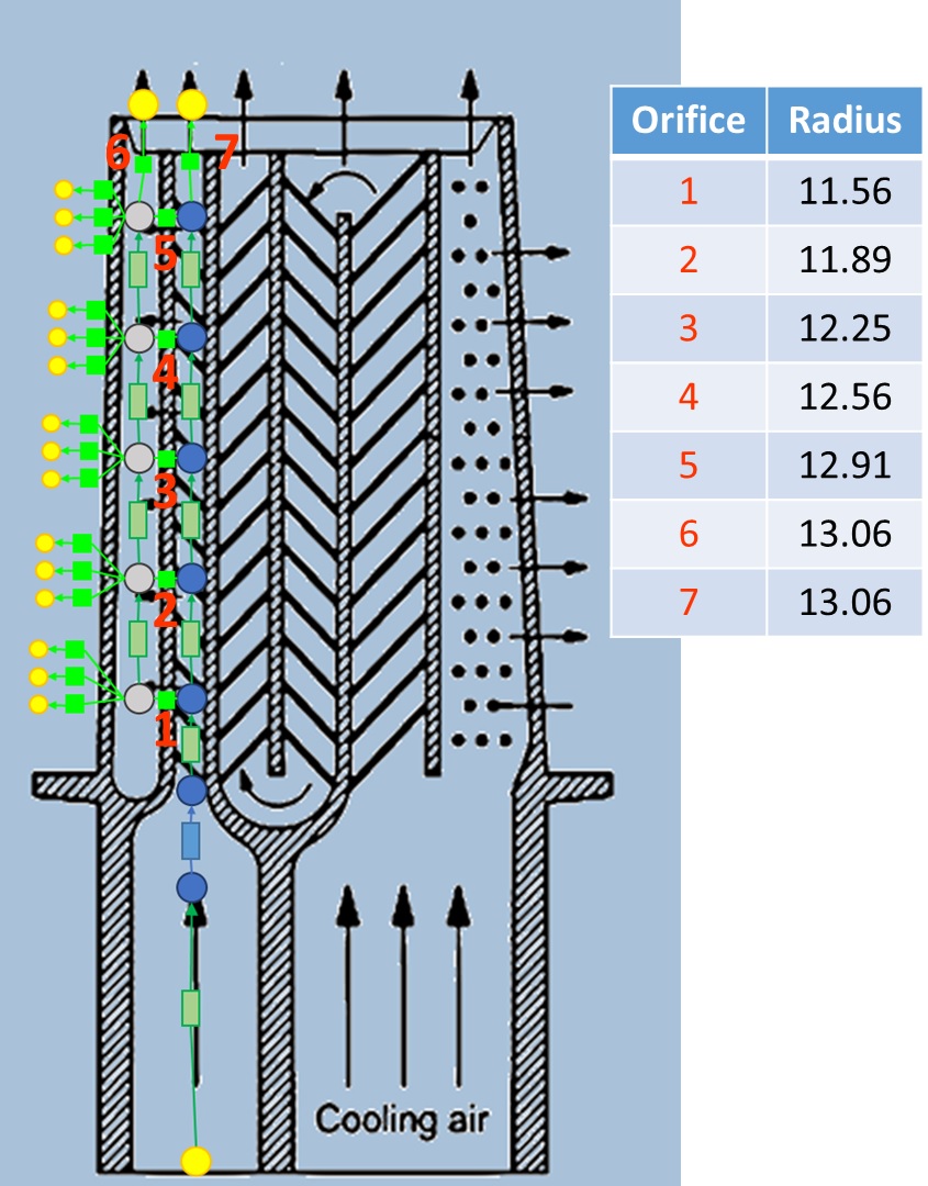 2. Set Diameter to 0.02 in and Cd to 0.8 for all film hole Conventional Orifice elements