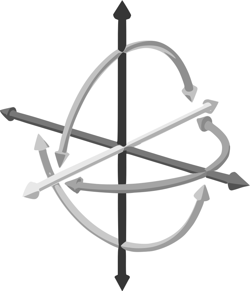 In space, using an orthonormal coordinate system (O,x,y,z), the 6 degrees of freedom are defined as follows: