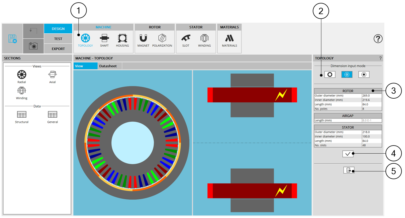 For more details concerning general functions of Motor Factory Design environment, please refer to the document “MotorFactory_Introduction”.