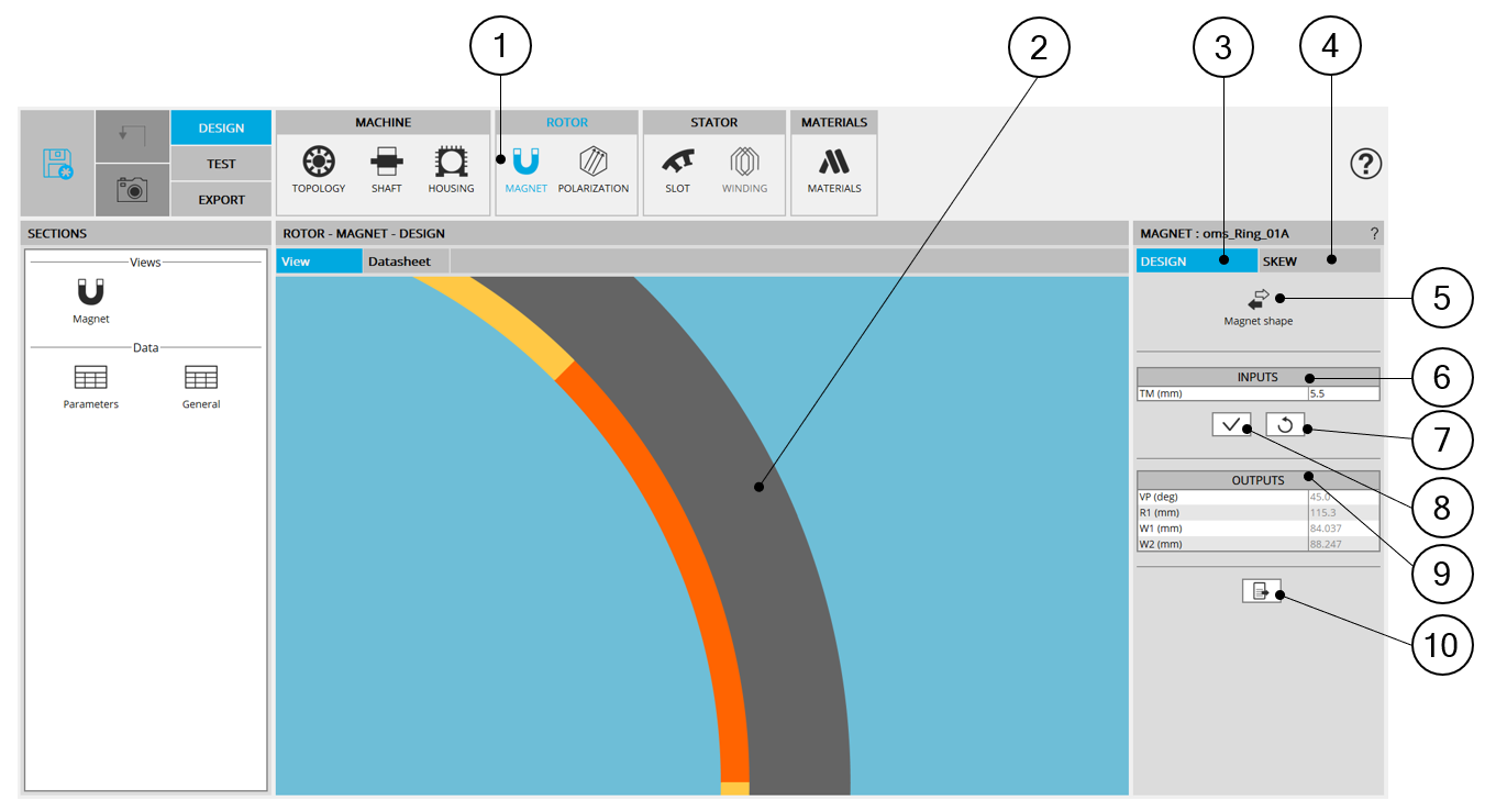 | 2 | Visualization of the motor radial view to view the magnet topology and dimensions. |