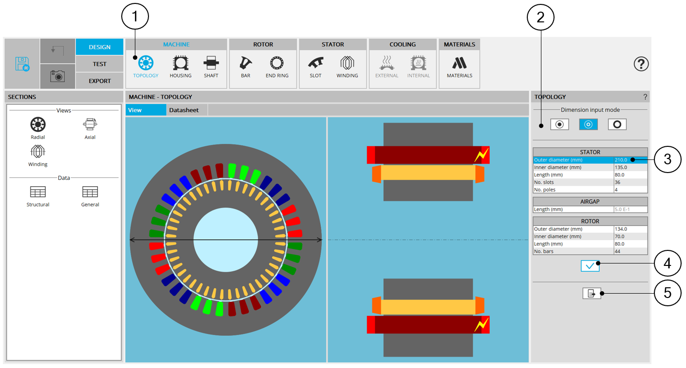 For more details concerning general functions of Motor Factory Design environment, please refer to the document “MotorFactory_Introduction”.