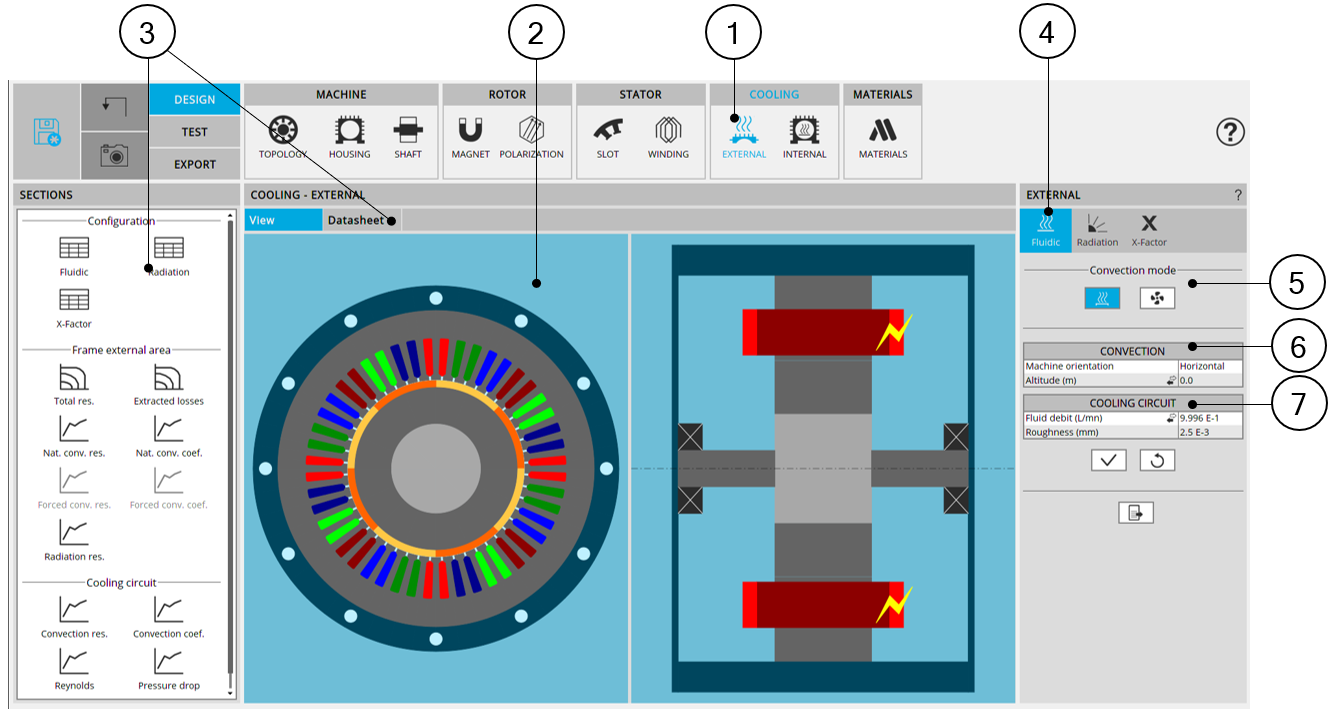 Frame convection and cooling circuit convection are key parameters to understand the thermal behavior of the machine.