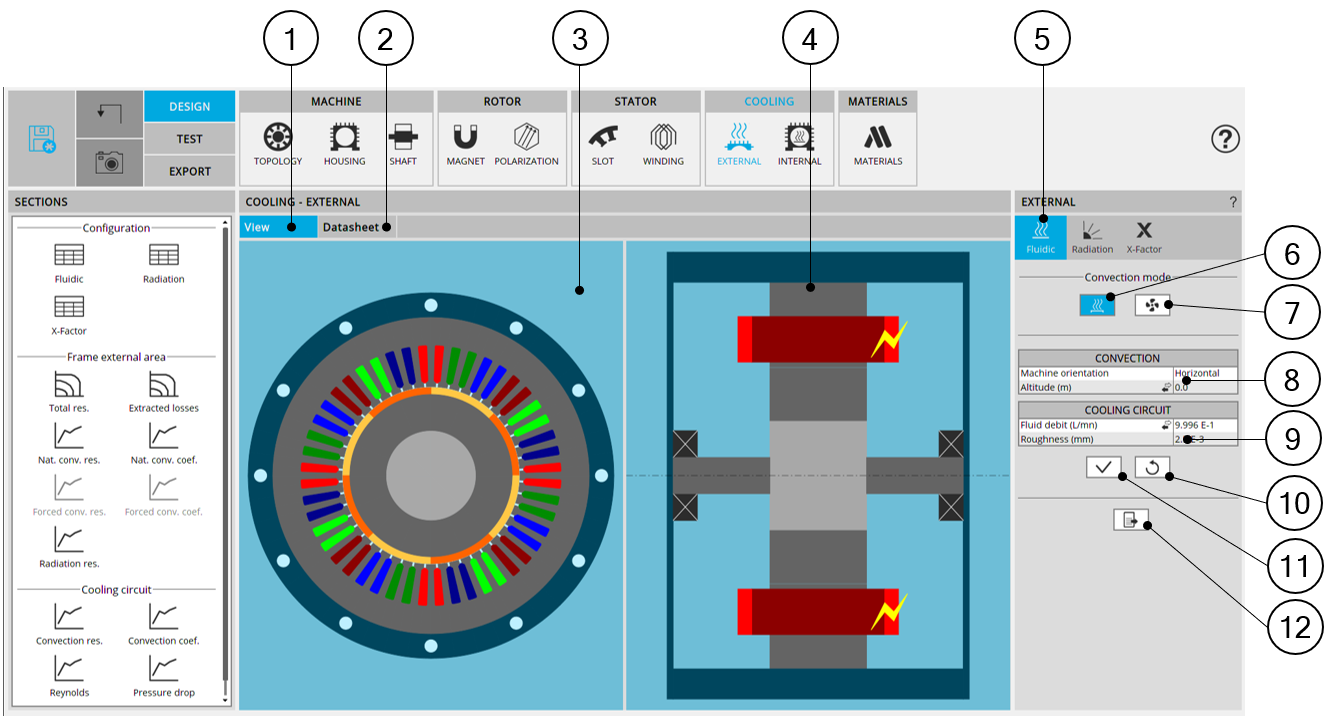 | 7 | Selected button to set that the external areas of the frame and the end caps are cooled by forced convection (forced fluid flow around the machine). |
