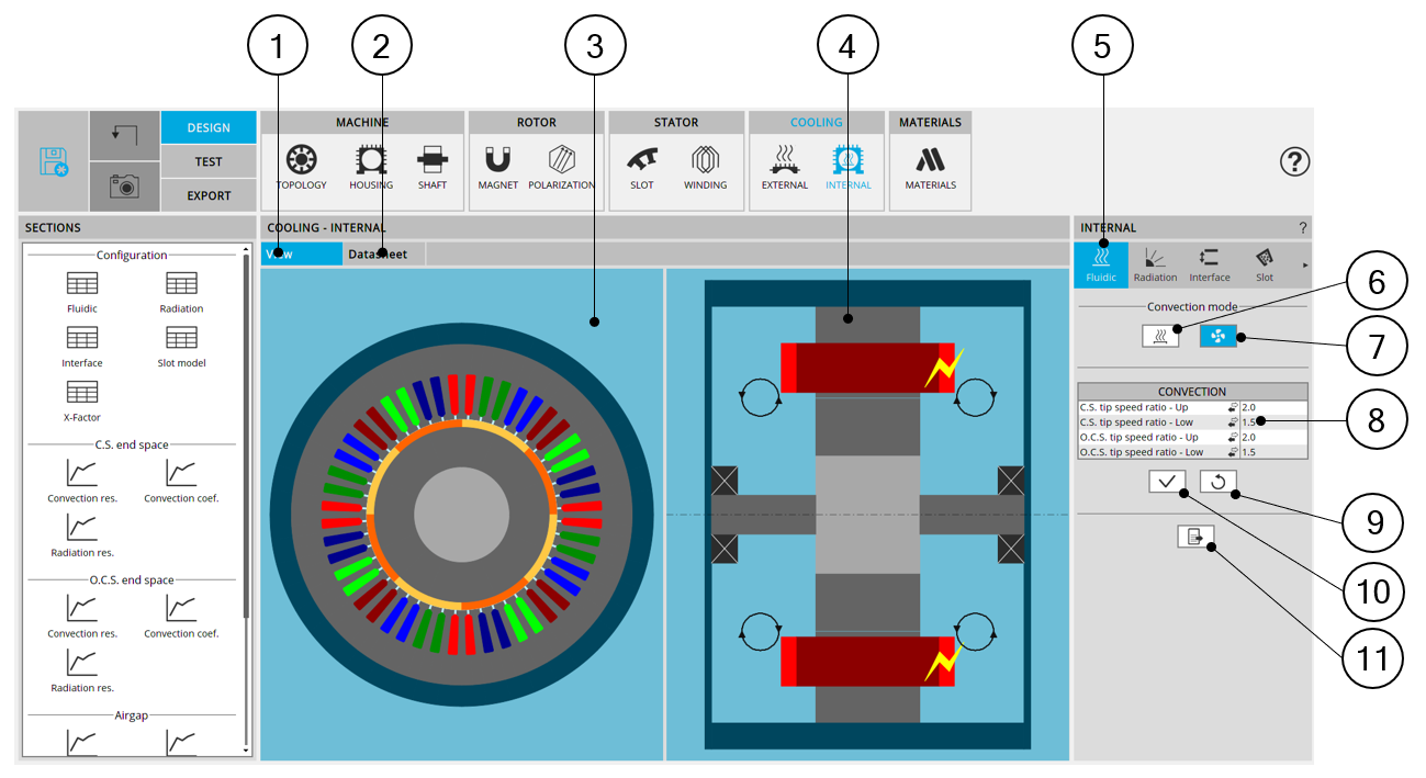 | 7 | Selected button to set that forced convection occurs in the end spaces (a specific fluid flow on each area of the end caps can be specify by the user, that can be linked to the machine rotation speed or not). |
