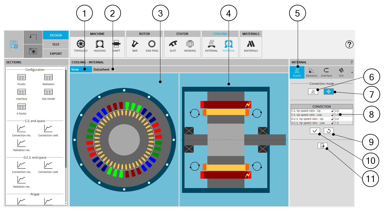 | 7 | Selected button to set that forced convection occurs in the end spaces (a specific fluid flow on each area of the end caps can be specify by the user, that can be linked to the machine rotation speed or not). |