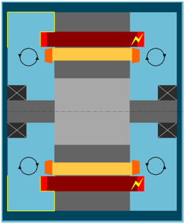 | 4 | Axial view of the motor, where specific exchange areas can be highlighted depending of the selected input. |