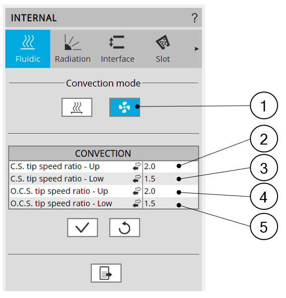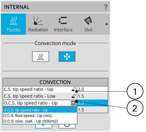 | 2 | Drop down menu allows choosing an input mode for the dedicated convection region. |