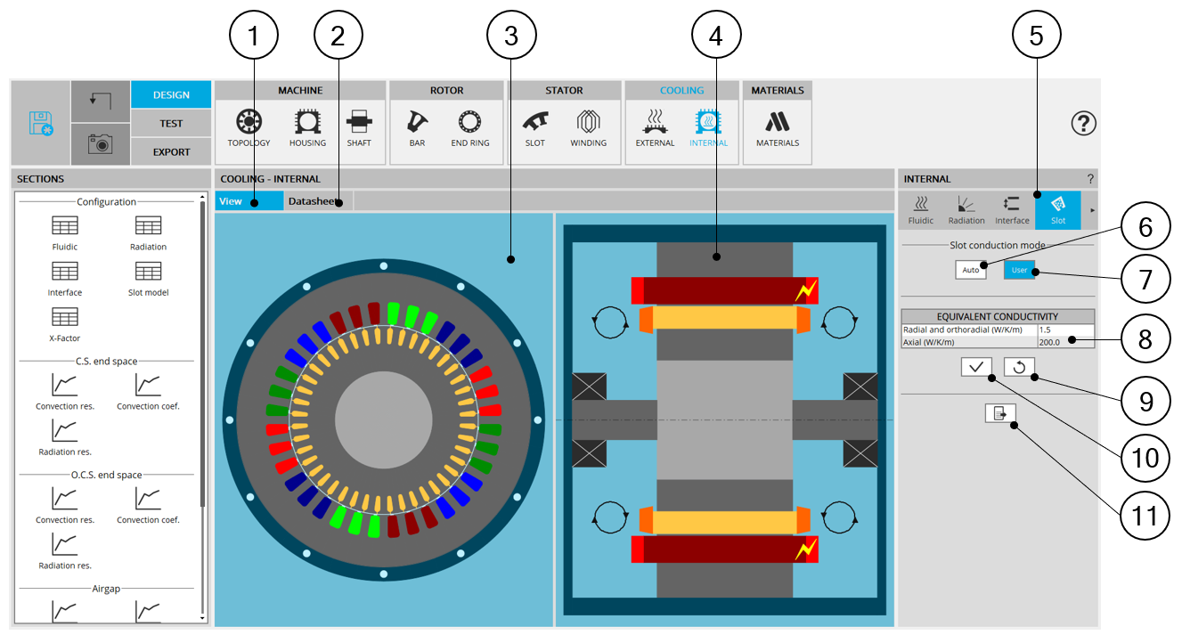 The thermal exchanges from the conductors to the stator core are complex phenomena for which FluxMotor embeds a dedicated model.