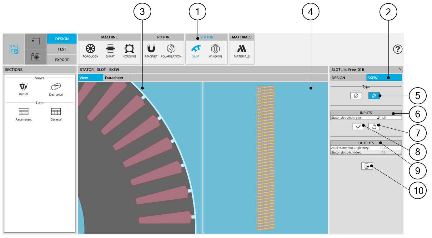 Selection of the STATOR subset: SLOT panel (Click on the icon