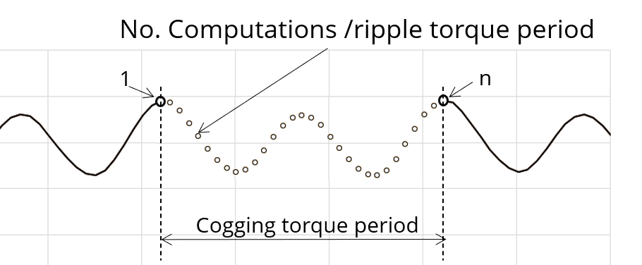 The user input “ No. comp. / ripple period ” (Number of computations per ripple torque period) influences the accuracy of results (computation of the peak-peak ripple torque) and the computation time.