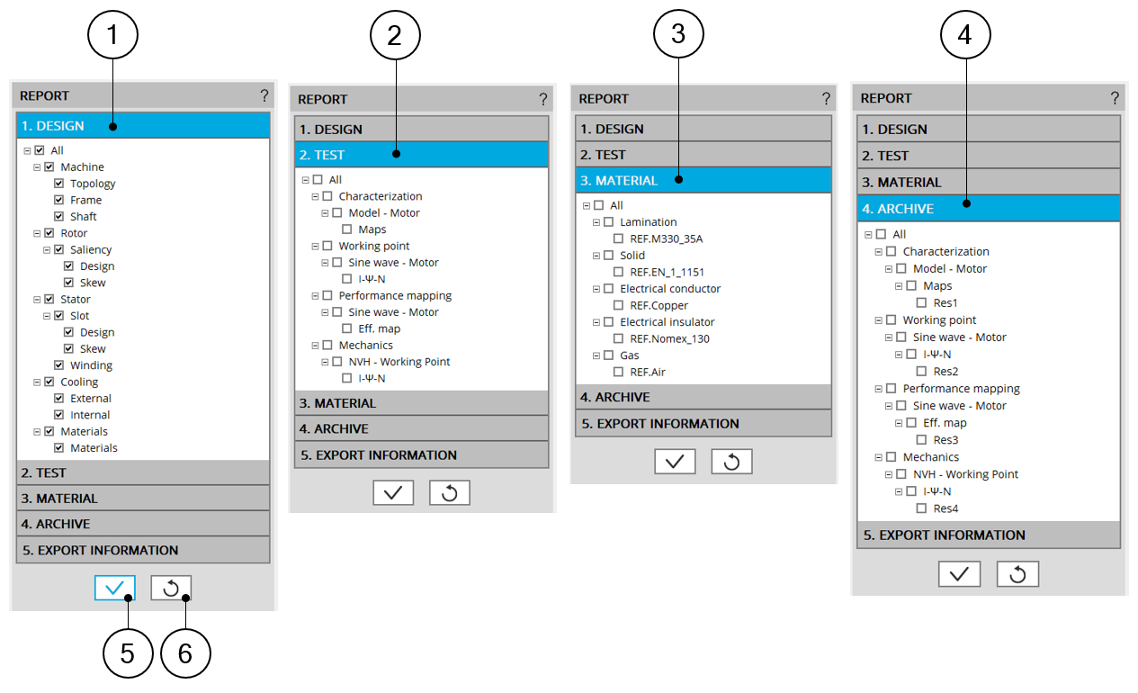 4 Archive groups all the tests which have been saved during the process. These can be added to the report.Note: A maximum of five results per test can be added to the report.