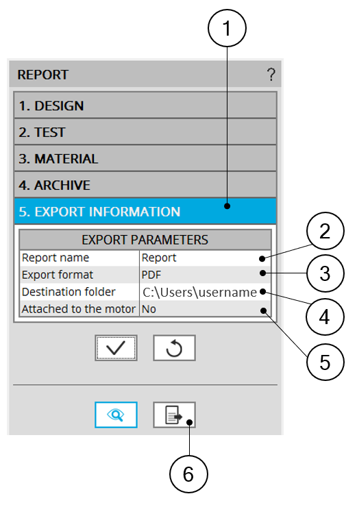 5 It is possible to attach the report (HTML or PDF file) to the motor in the “Motor Catalog”