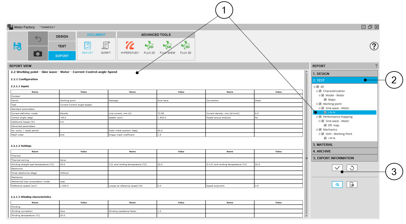 Motor Factory - EXPORT AREA – Export a report – Chapters to be selected