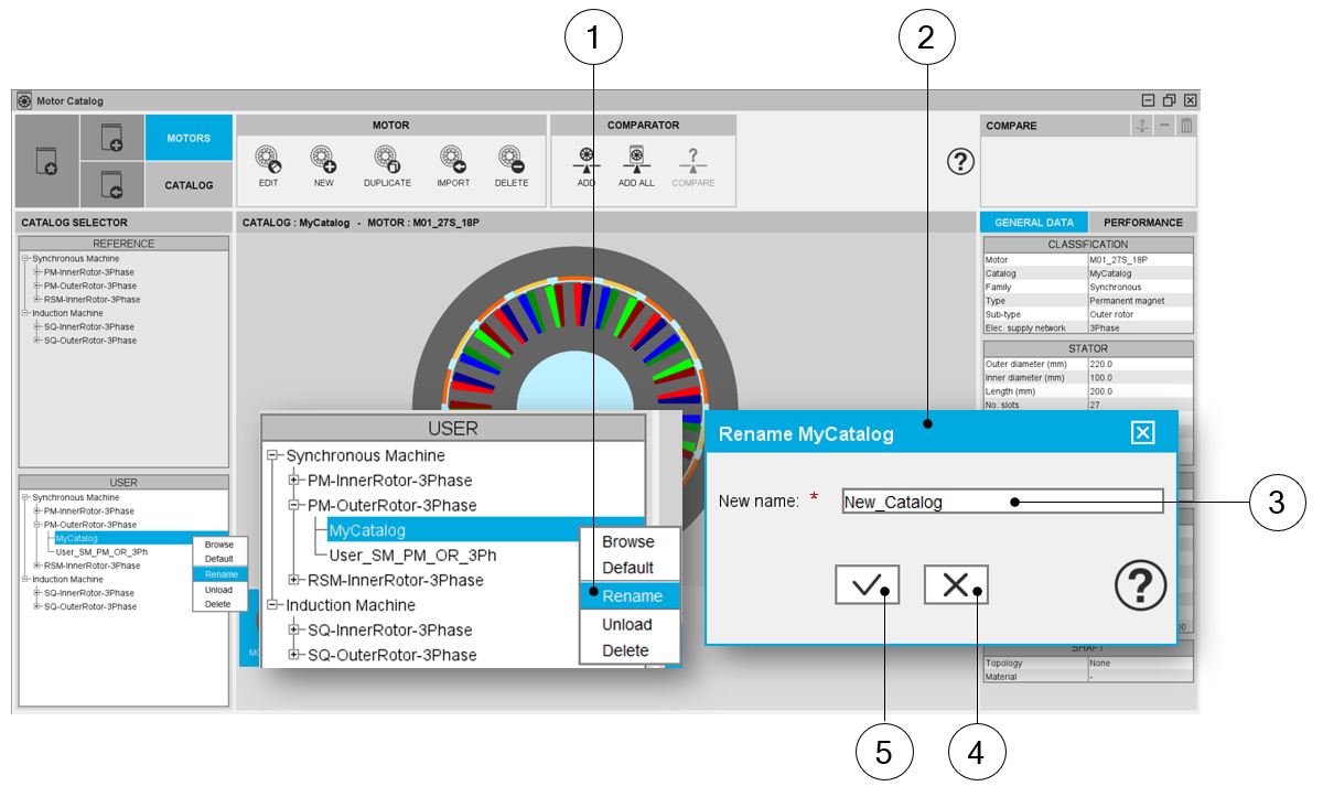 | 3 | Give a new name to the selected catalog (a name which is not already used in Motor Catalog). |