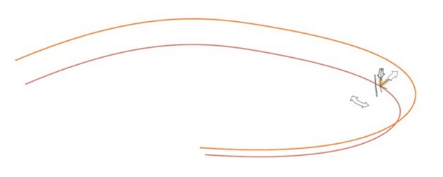 The source curves are displayed in red, while the offset curves are displayed in orange.