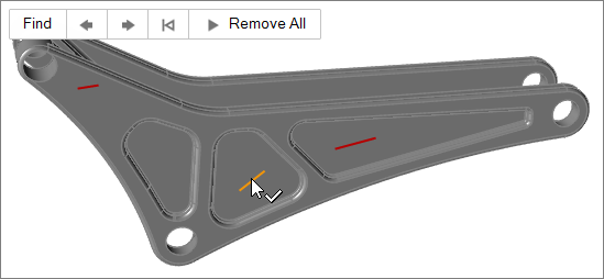 The Rounds tool allows you to select a round or fillet and find all that are larger, smaller, or similar (±5%) in size. It will also attempt to identify chains of rounds or fillets, although these chains may not be removed successfully all at once. In general, it is best to remove small fillets first, then larger fillets, then rounds. When you get to a point where you cannot remove any more, it is time to use other modeling tools and strategies to complete the geometry simplification.