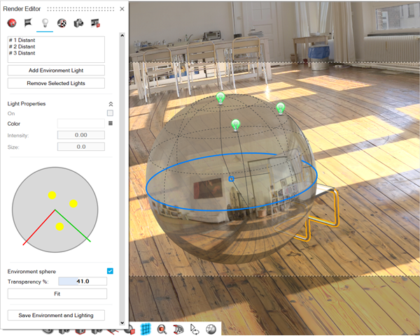 Transparency can only be adjusted using the Render Editor. Automatically fit the lights to the scene - In the Render Editor, turn on Environment sphere.