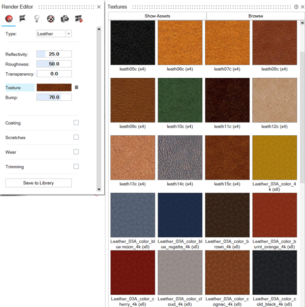Open the texture library - Next to the texture preview image, select