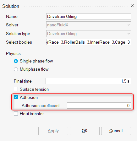 Important: Adhesion Coefficient (adhesionCoeff) must also be set in Material (phase) parameters when using the adhesion model.