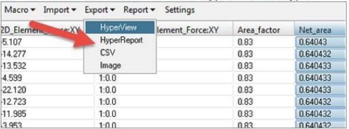 - Export HyperMesh and HyperView data to an Excel file for further post-processing and report generation.
