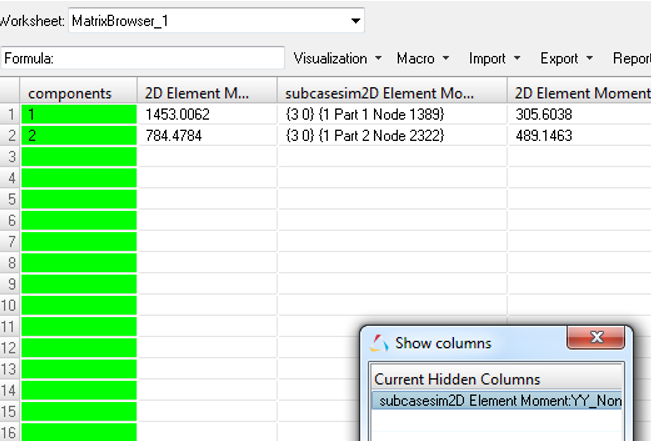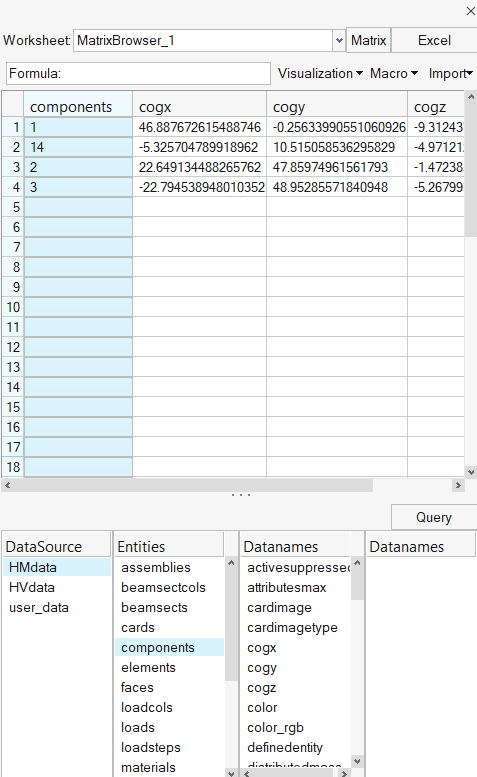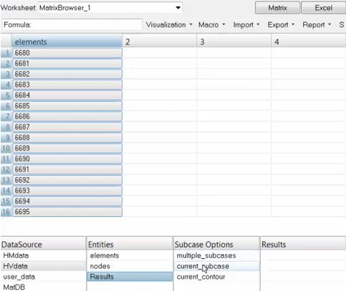 Use the Matrix Browser to explore the HyperMesh and HyperView data entities and export the entities to external files for further analysis.