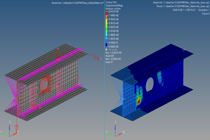 - Establish a link between HyperMesh and HyperView in order to access model data, such as material, property, beam section, and results data in a single environment. The browser supports the selection of multiple load cases from the HyperView results database.