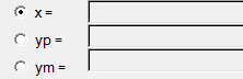 位相/大きさカーブを作成する場合、x、ypおよびymベクトルは、Define Curvesパネルの上部に表示されます。実数/虚数カーブを作成する場合、x、yrおよびyiベクトルは、Define Curvesパネルの上部に表示されます。XおよびYベクトルのデータソースは、テキスト欄に表示されます。x、yp、ym、yrまたはyiベクトルラジオボタン、もしくは対応するテキストボックスをクリックして、編集するベクトルを選択します。