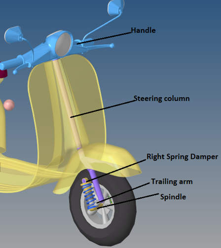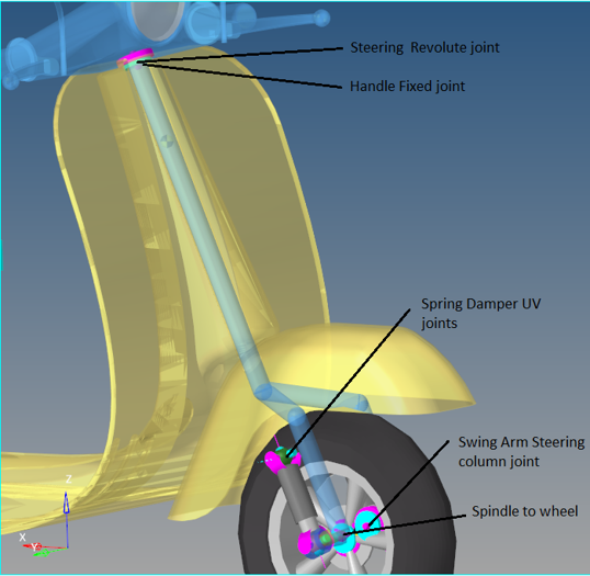 | ステアリングスイングアームアタッチメントジョイント | 回転 | スイングアーム | ステアリングコラム | スイングアームステアリングアタッチメントポイント | |