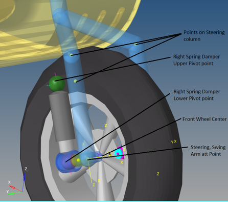 図 3. 右側の主要ポイント - ダブルサイドトレーリングリンクサスペンション