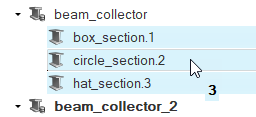 Modelブラウザでドラッグ&ドロップ機能を使用して、ビーム断面、コンポーネント、マルチボディ、およびアセンブリを構成設定します。インクルードファイルは、モデルブラウザとソルバーブラウザの両方で構成設定できます。