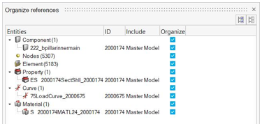 インクルードファイルを構成設定するには、Modelブラウザでインクルードファイルをダブルクリックし、Include Fileエンティティビューを開きます。Includeビューがアクティブな状態では、任意のエンティティをインクルードファイル間でドラッグ&ドロップできます。