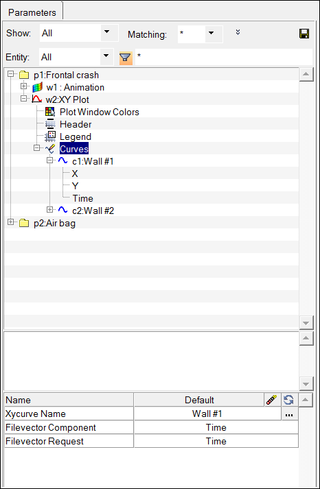図 2. 自動スクリプトパラメータを作成するためにカーブ属性を選択した後のParametersブラウザ
