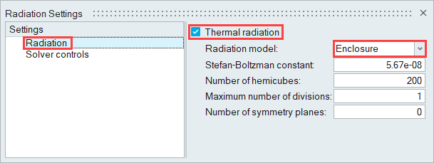 この手順では、熱放射のセットアップに関連したパラメータを指定します。