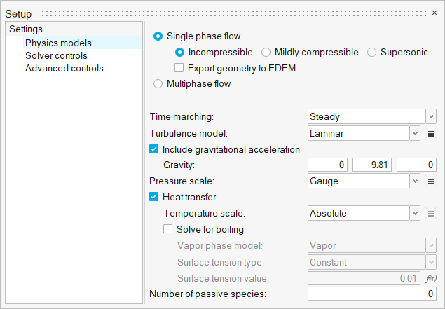 この問題では、すべてのサーフェスが壁であるため、デフォルトの壁境界条件が割り当てられます。ヘッドランプの外壁には、対流熱流束の境界条件を含むすべりのない壁境界条件が与えられます。