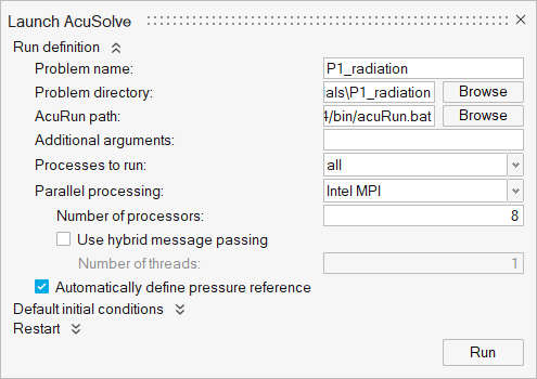 このチュートリアルでは、P-1放射モデルを使用して、同心球体間における放射熱伝達の定常状態シミュレーション結果を設定、解析、表示する方法を紹介します。このチュートリアルを開始する前に、入門チュートリアルであるACU-T:1000 ユーザーインターフェースをすでに完了している必要があります。また、HyperMesh CFD、AcuSolveの基本を理解しているものとします。このシミュレーションを実行するには、ライセンス供与済みバージョンのHyperMesh CFDおよびAcuSolveにアクセスできる必要があります。