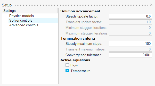 この問題を定常状態の事例として解析し、固体と流体領域の熱伝達によって温度平衡が得られるようにします。