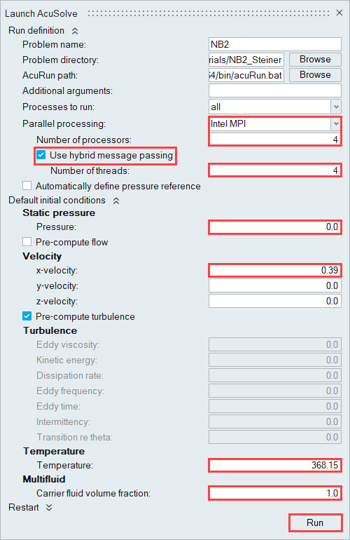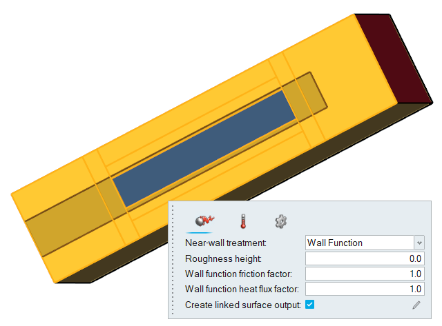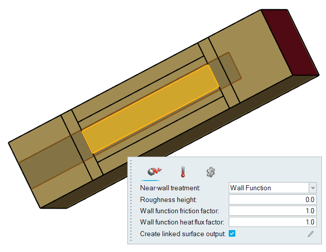 圧力が2バールで温度が95 ℃の水が、0.39m/secの平均速度で入口に流入し、130℃に保たれている加熱壁を通過します。