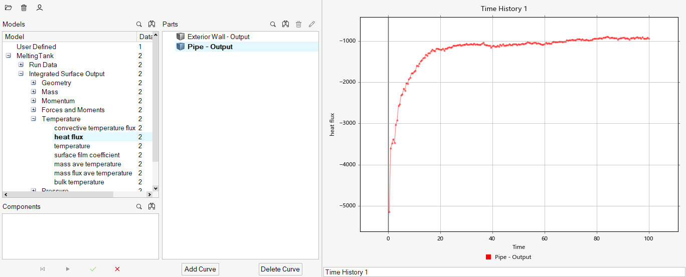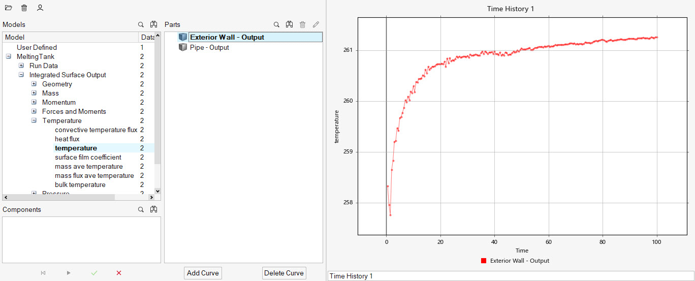 このチュートリアルでは、多孔質媒体効果に依存する温度での流れおよび温度シミュレーションを設定して解析する方法を知ることができました。提示された実装を使用することで、流体の融点を指定し、流体の溶解領域を計算できます。まず、HyperMesh CFD入力データベースをインポートして、流体の融点を制御できるように多孔質媒体を定義しました。次に、熱境界条件を割り当て、メッシュを生成しました。解が計算されると、HyperMesh CFD Plot Managerを使用して、このモデルのクリティカルなサーフェスの熱流束と温度のプロットを作成しました。
