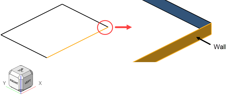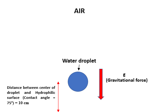 このチュートリアルで扱う問題を以下の図に示します。この問題では、直径2mmの水滴が重力の影響で自由に落下します。水滴の半径が小さいので、壁面への衝突後の水滴形状を回復するために、適用される壁の処理として表面張力と接触角が大きな役割を果たします。AcuSolveを使用して、壁に衝突した後のさまざまな水滴形状の作成をシミュレートします。