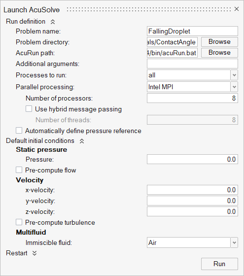 この手順では、水滴について節点出力頻度を定義し、節点初期条件を指定します。