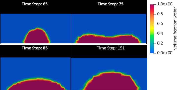 このチュートリアルでは、HyperMesh CFDを使用して、接触角と表面張力の関与するシミュレーションを設定し、解析する方法を知ることができました。形状をインポートして、シミュレーションパラメータと流れ境界条件を定義しました。解析を計算した後、HyperMesh CFD Postを使用して水の体積分率のコンターを作成しました。