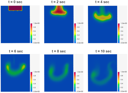 このチュートリアルでは、HyperMesh CFDを使用して、物質種輸送を扱うシミュレーションを設定し、解析する方法を知ることができました。まず、HyperMeshの入力ファイル(形状を含む)を開き、次にシミュレーションパラメータ、流体材料、境界条件を定義しました。解が計算された後に、断面表示と等値面表示を使用して物質種輸送の結果を可視化しました。