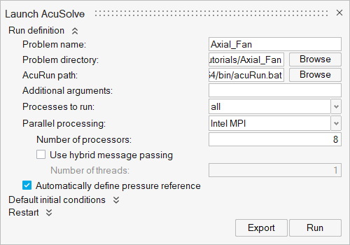 このシミュレーションでは、従来のファンコンポーネントを使用したファンのモデリング方法を説明します。このチュートリアルを開始する前に、入門チュートリアルであるACU-T:1000 ユーザーインターフェースをすでに完了している必要があります。また、HyperMesh CFD、AcuSolveの基本を理解しているものとします。このシミュレーションを実行するには、ライセンス供与済みバージョンのHyperMesh CFDおよびAcuSolveにアクセスできる必要があります。