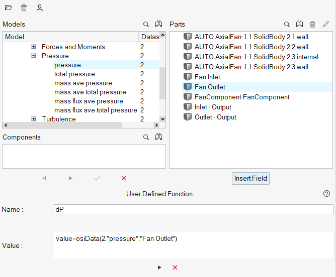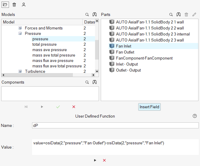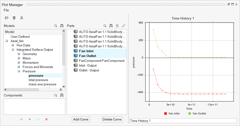 このチュートリアルでは、HyperMesh CFDを使用して、係数のファンコンポーネントを扱うシミュレーションを設定し、解析する方法を知ることができました。形状をインポートして、シミュレーションパラメータ、係数のファンコンポーネント、流れ境界条件を定義しました。解が計算された後に、HM-CFD Plotツールでファンの入口と出口の圧力をプロットしました。
