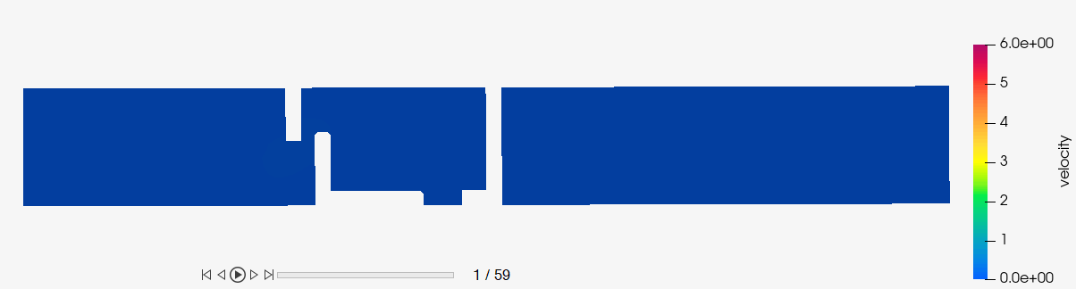 流れの初期状態は実際には層流ですが、バルブシャッター周囲の流量と流速の増大によって、乱流状態への急速な変化が生じると予想されます。したがって、このシミュレーションは、過渡的な乱流をモデル化するように設定されます。非定常解析を実行する際は、定義済みのスタッガー基準に基づいて時間ステップごとに収束に達します。メッシュモーションは、任意のメッシュ移動(ALEメッシュモーション)を使用してモデル化されます。