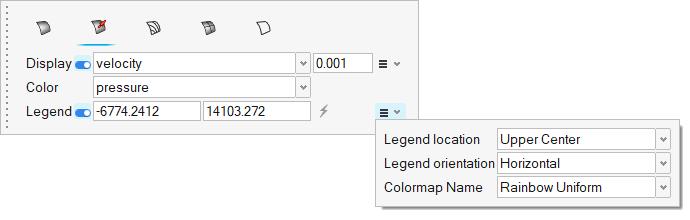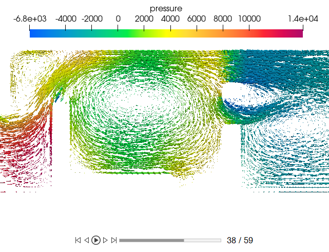 切断面上の圧力コンターと速度ベクトルの表示